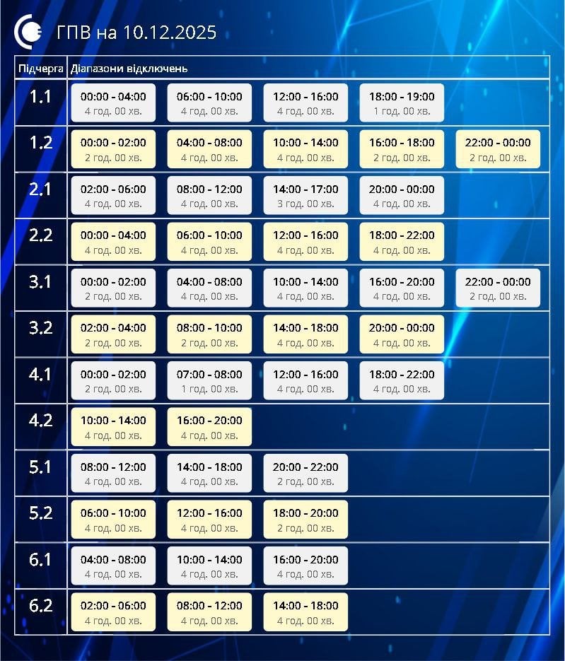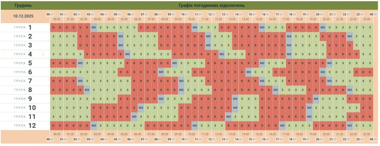 Отключение света в Украине в среду, 10 декабря / © ТСН.ua