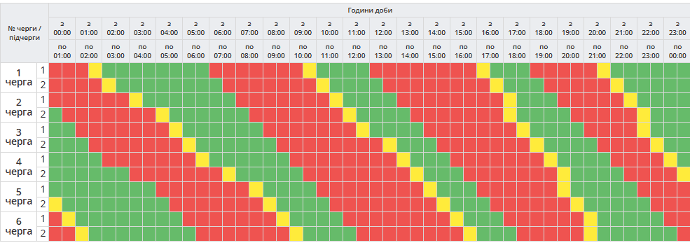 6.1 — 00:00 — 01:00; 05:30 — 11:30; 15:00 — 22:00;