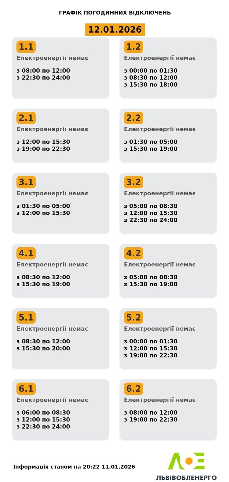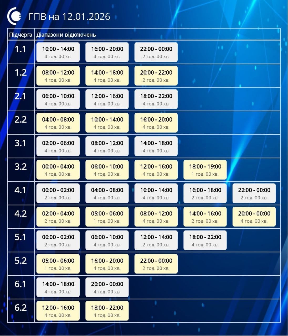 По данным ДТЭК, 12 января в части Броварского и Бориспольского районов области продолжаются экстренные отключения. В других общинах Киевской области действуют почасовые графики.
