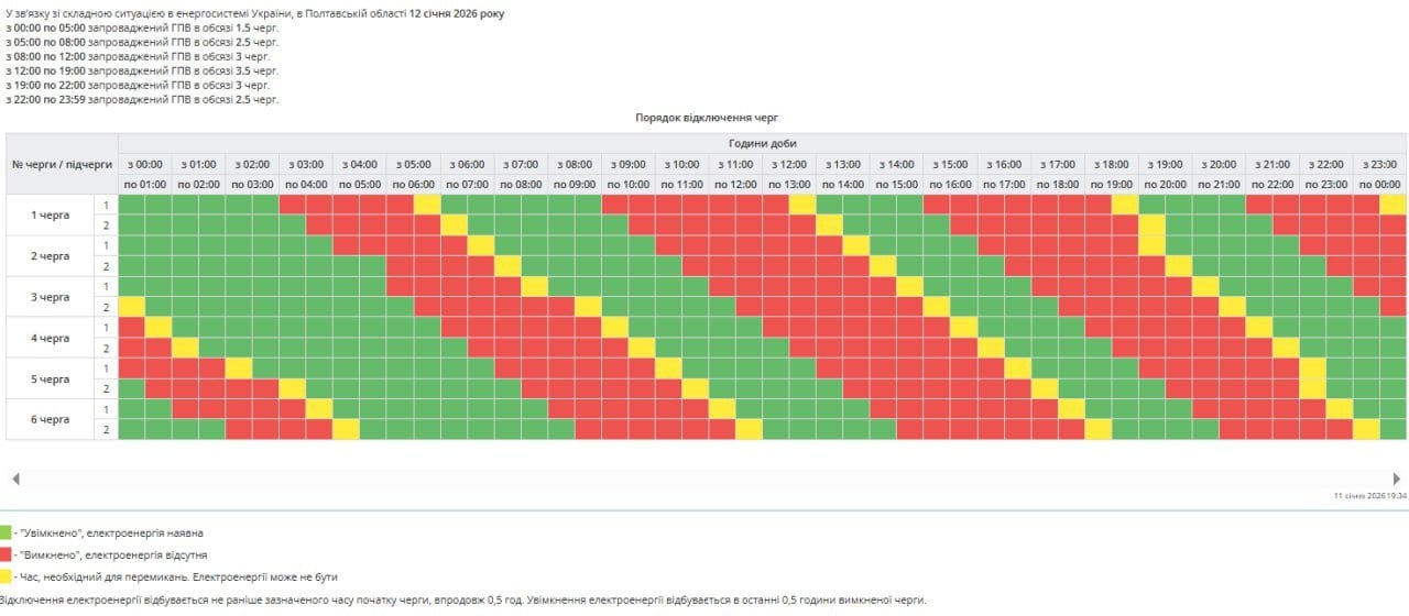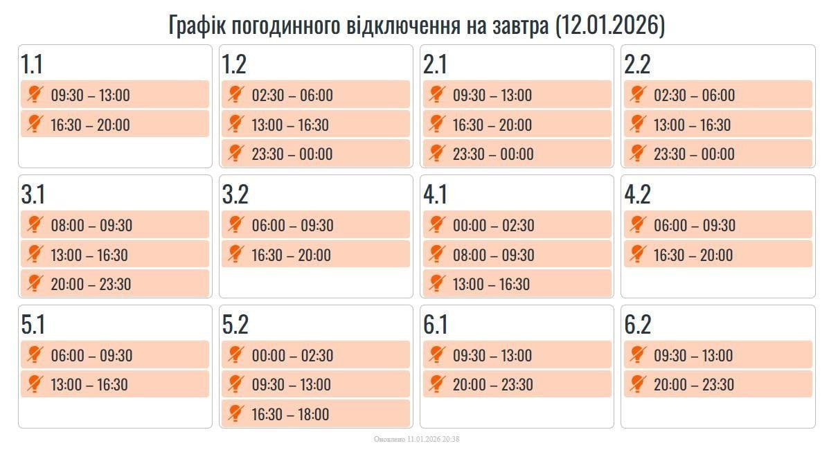 Во всех областях 12 января будут применены графики почасовых отключений электроэнергии.