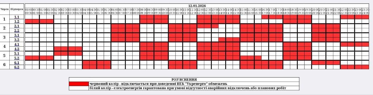 Как сообщалось, в Украине 12 января будут действовать отключения света. В Укрэнерго подчеркнули, что будут применяться графики почасовых отключений и графики ограничения мощности (для промышленных потребителей).