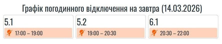 Во всех регионах Украины в субботу, 14 марта, будут введены графики почасовых отключений света . Причина ограничений электроснабжения – последствия российских массированных ракетно-дроновых атак на энергообъекты.