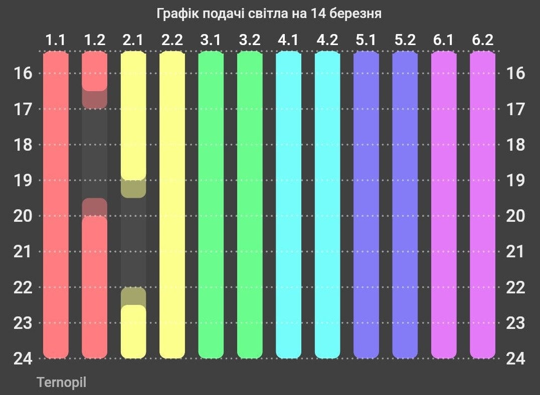 График отключения света на Тернопольщине 14 марта