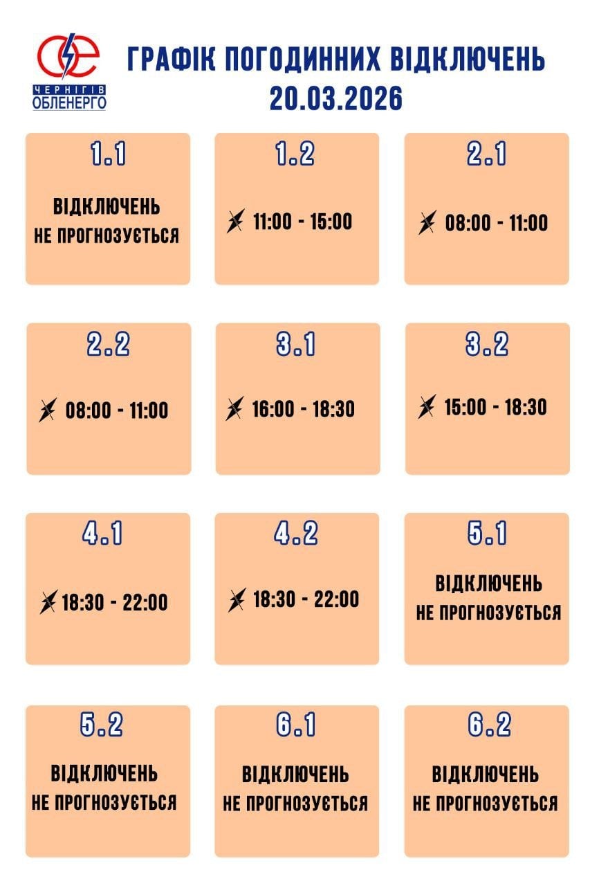 График отключения света на Черниговщине 20 марта