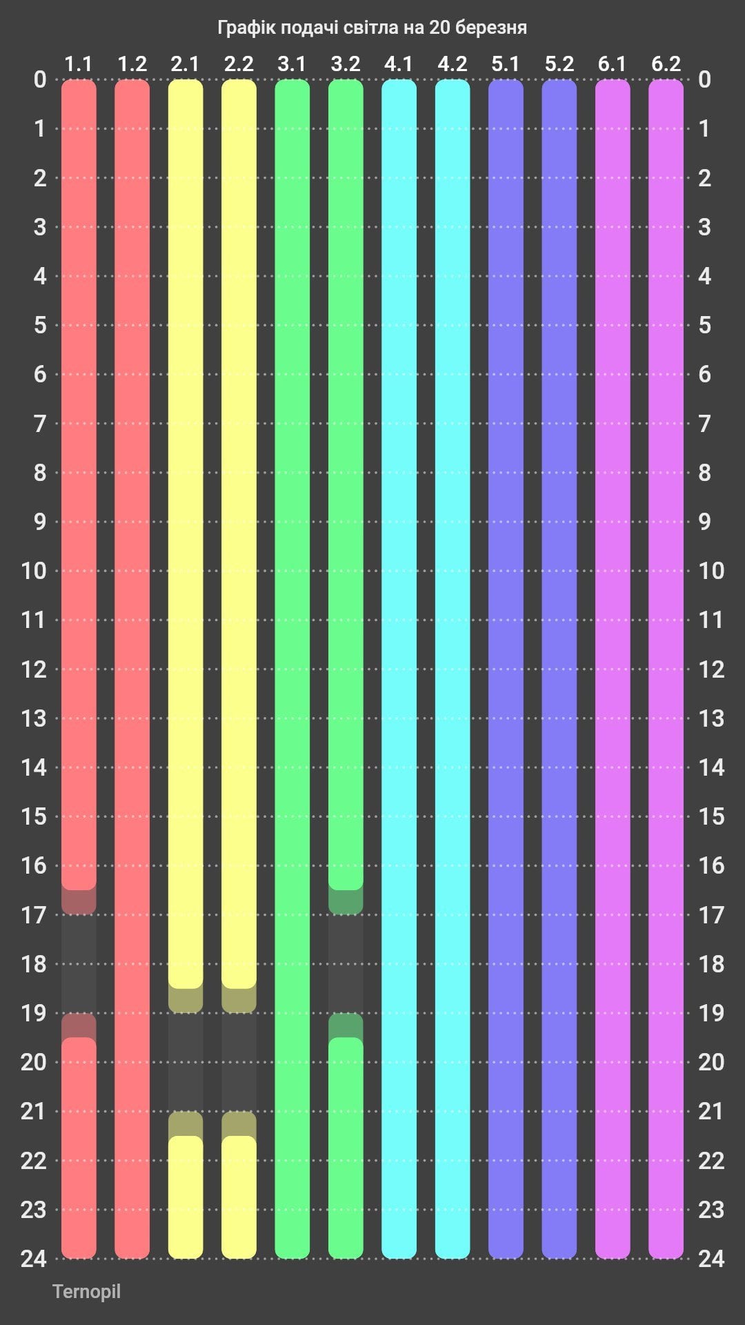 График отключения света на Тернопольщине 20 марта