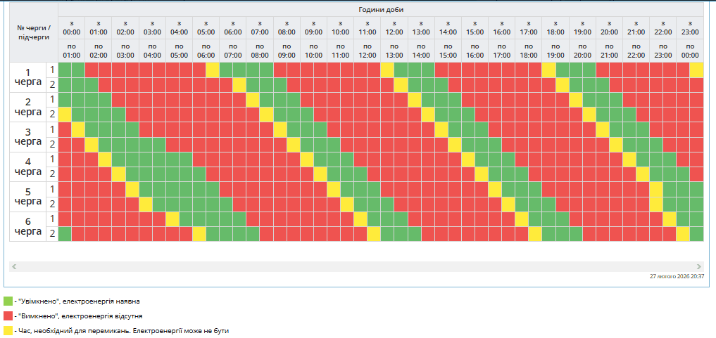 В большинстве регионов Украины в субботу, 28 февраля, будут введены графики почасовых отключений света . Причина ограничений электроснабжения – последствия российских массированных ракетно-дроновых атак на энергообъекты.
