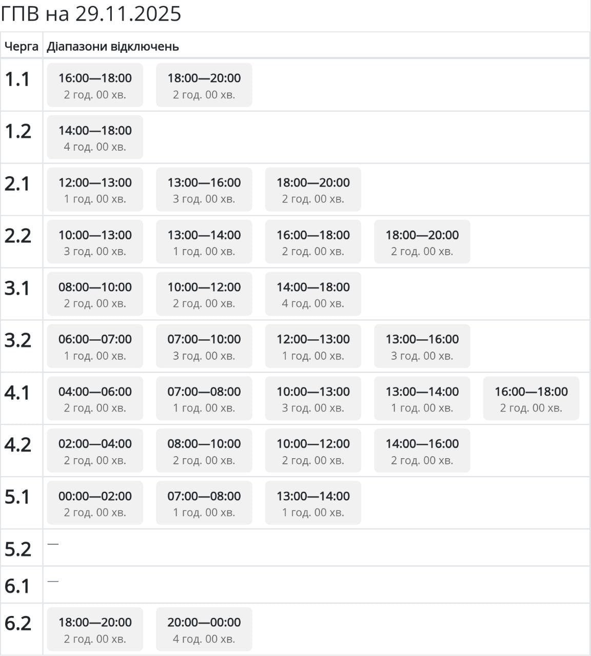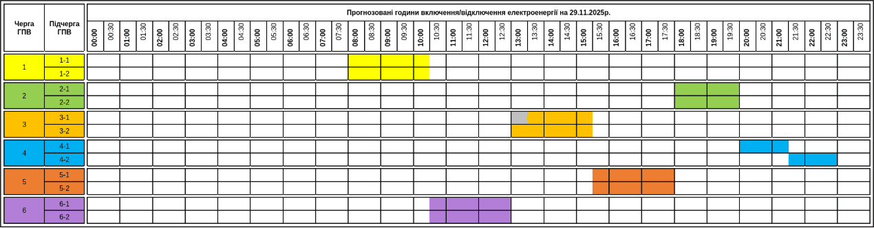 График отключения света на Львовщине 29 ноября