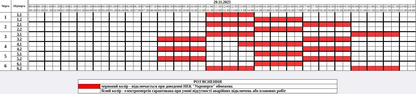 График отключения света на Ровенщине 29 ноября