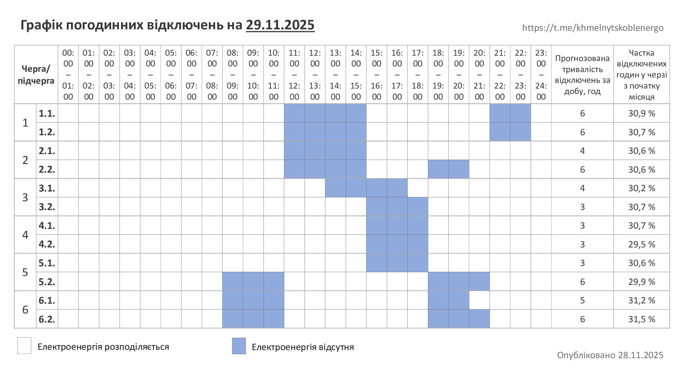 График отключения света в Хмельницкой области 29 ноября