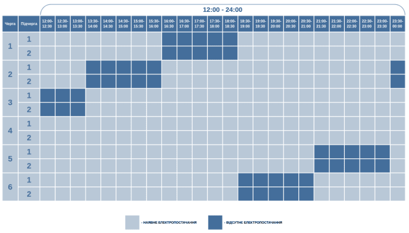 График отключения света в Полтавской области