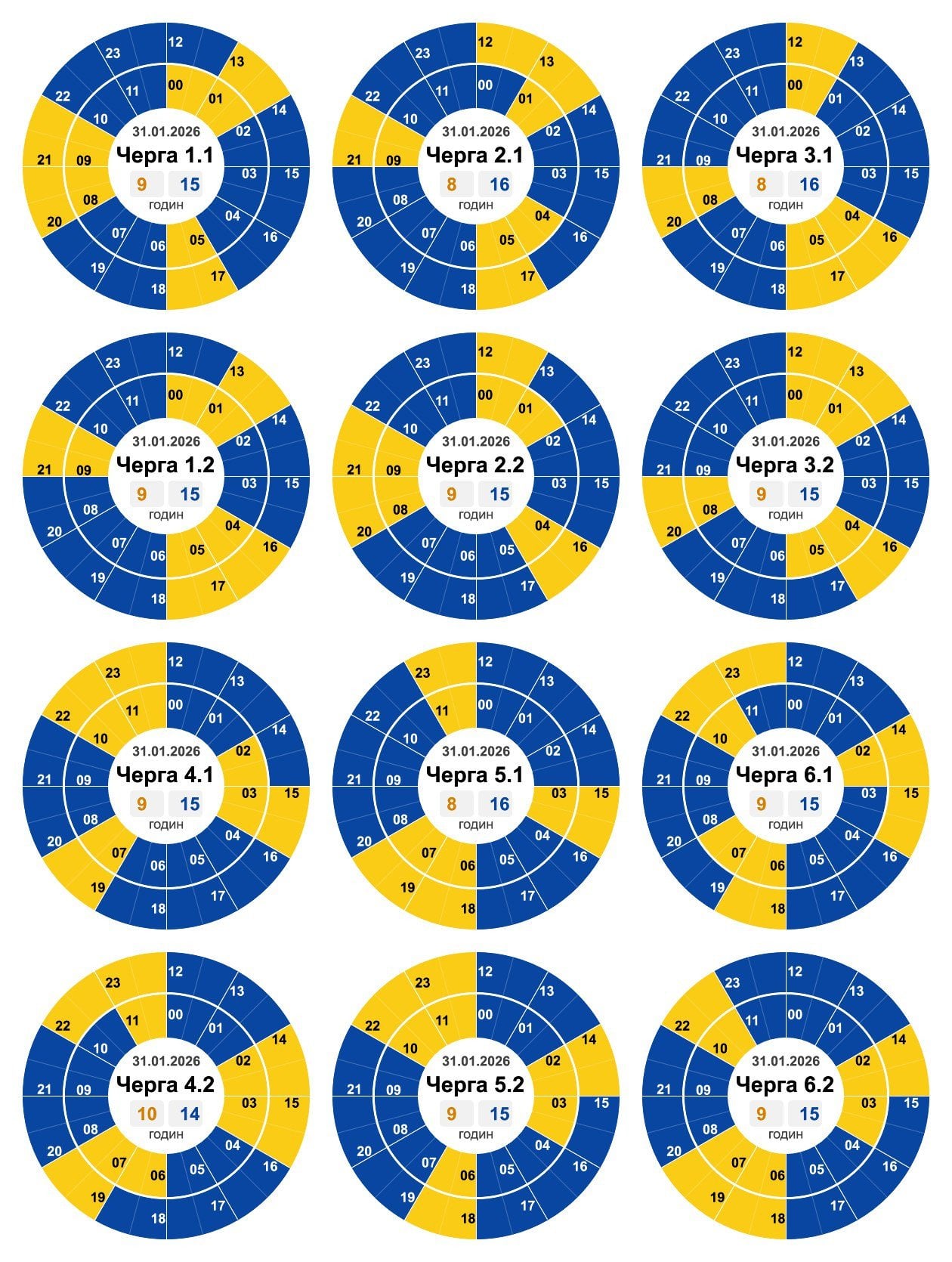 Отключение света 31 января: актуальные графики для всех областей