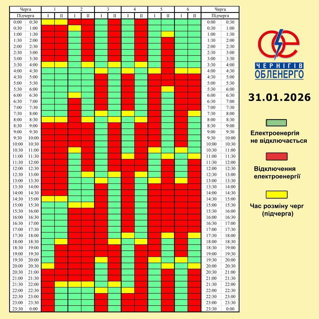 График отключения света на Черниговщине 31 января
