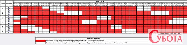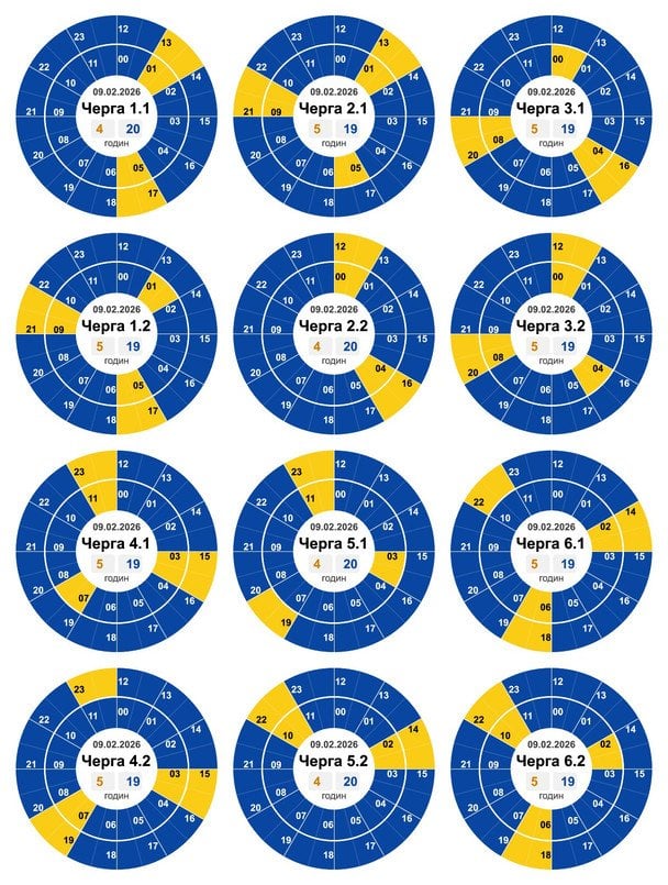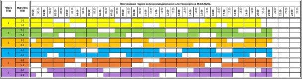 На сайте «Житомироблэнерго» опубликованы такие графики на 9 февраля для всех подгрупп: