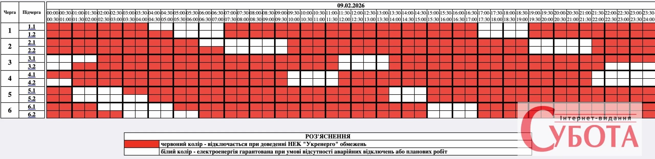 Как сообщили в «Черниговоблэнерго», графики для каждой из подгрупп будут выглядеть так:
