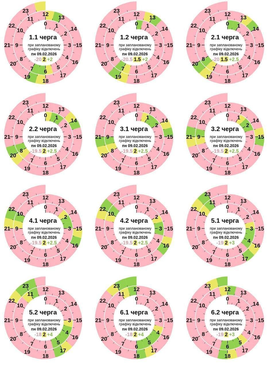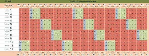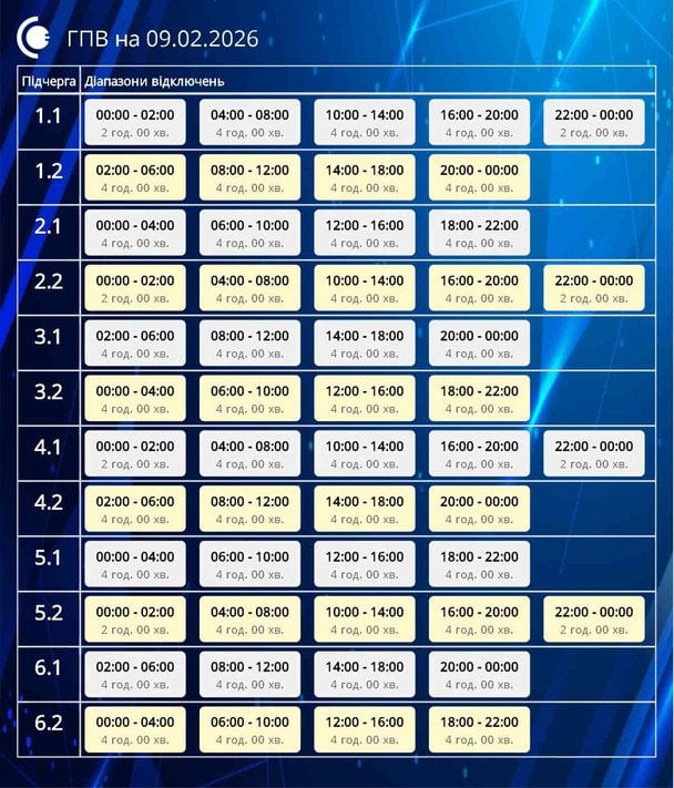 Из-за последствий российских массированных ракетно-дронных атак на энергообъекты Украины в понедельник, 9 февраля, во всех областях будут введены графики почасовых отключений света.