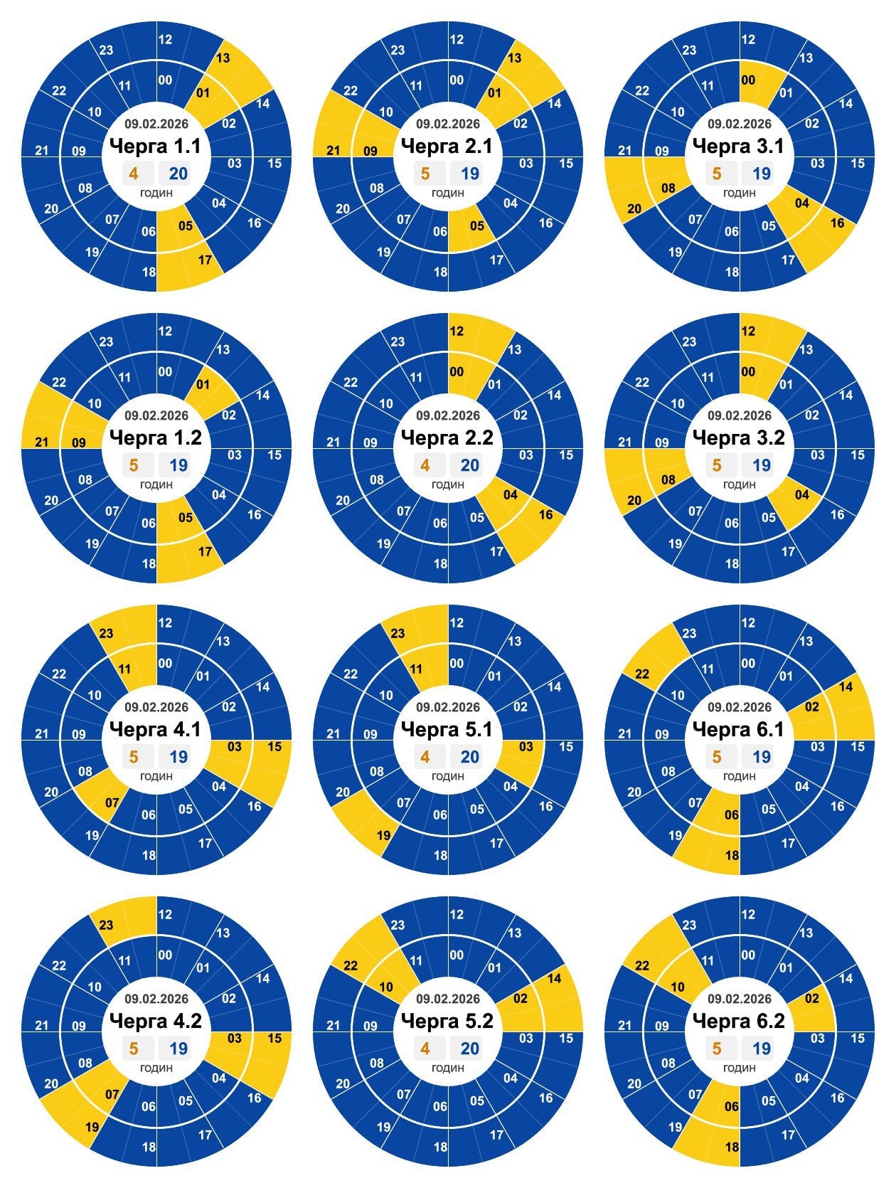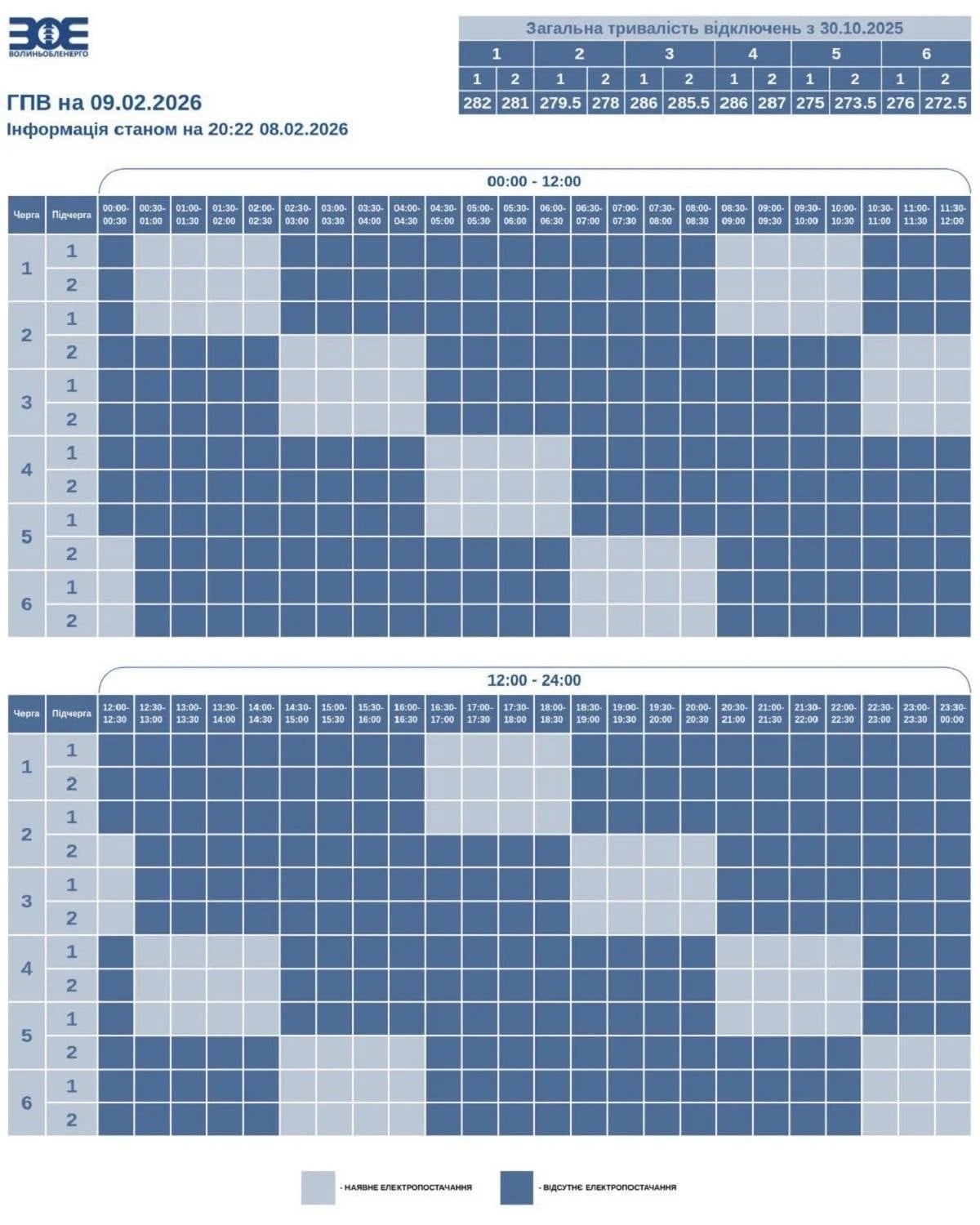 Как сообщили в «Волыньоблэнерго», графики в течение суток для каждой из подгрупп будут такими: