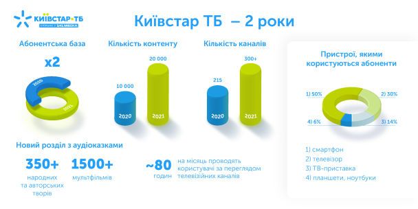 "Одним из главных достижений платформы в этом году стало то, что Киевстар ТВ теперь доступен абонентам любого оператора или интернет-провайдера. Вместе со стремительным ростом контента на платформе, удобством пользования и доступности услуги, платформа смогла увеличить абонентскую базу в два раза", – прокомментировала директор по развитию бизнеса на массовом рынке, Киевстар, Татьяна Лукинюк.