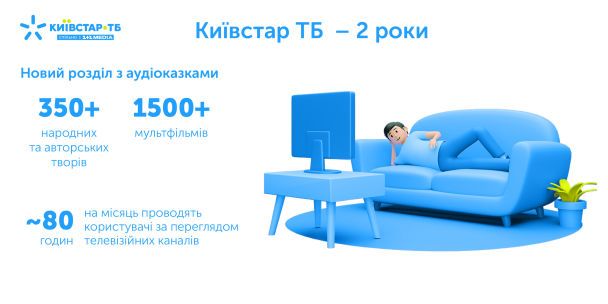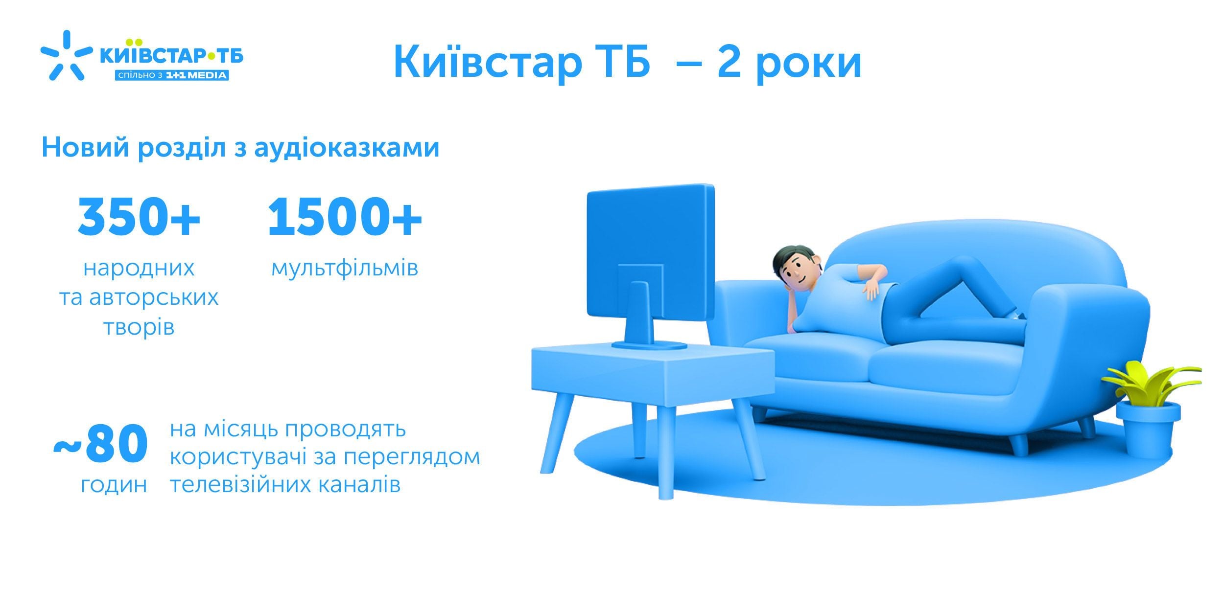 В октябре этого года на Киевстар ТВ появился отдельный раздел с аудиосказками на украинском языке, который насчитывает более 350 народных и авторских произведений, а также более 1500 мультфильмов и мультсериалов, наиболее популярными из которых являются "Смурфики", "Губка Боб Квадратные Штаны", Шрек", "Мадагаскар" и "Щенячий патруль".