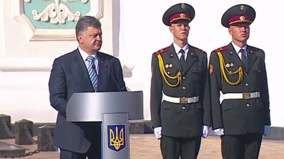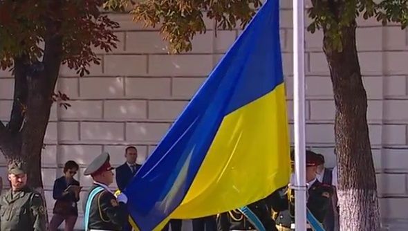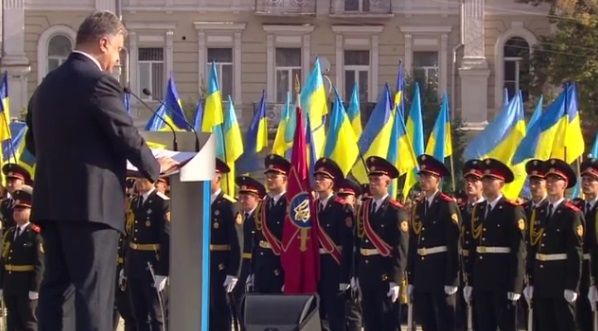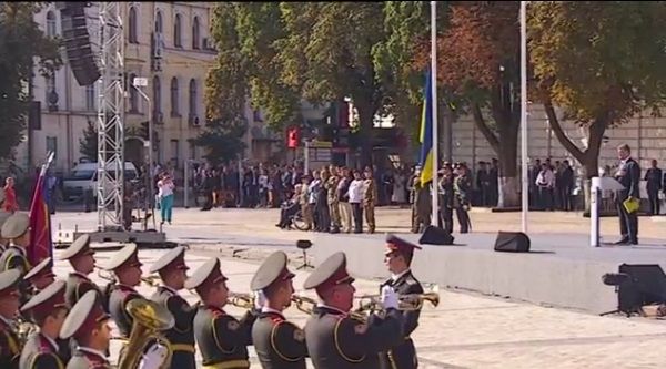 Во время церемонии торжественного поднятия флага, президент Петр Порошенко призвал к единству