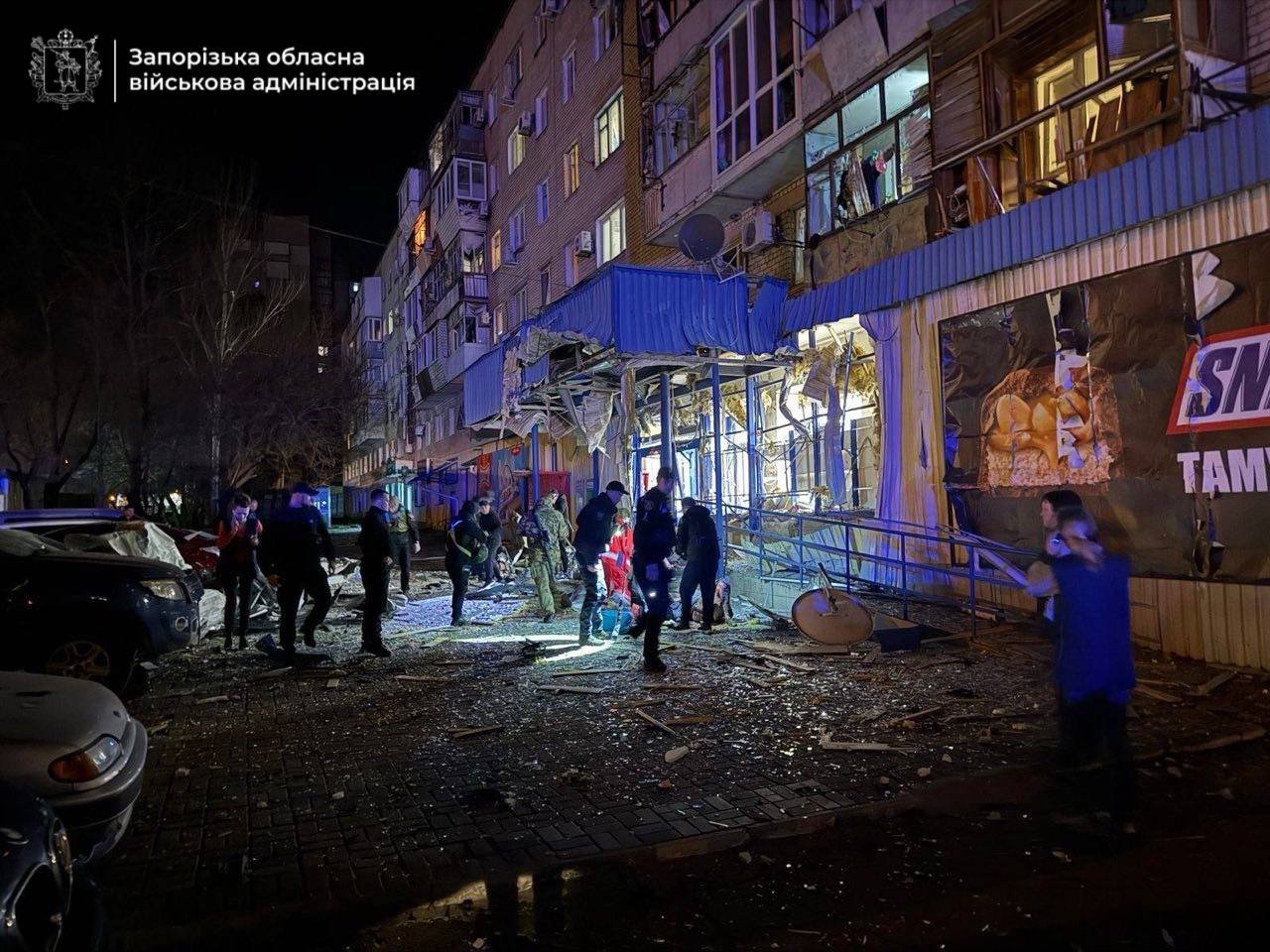 Российские войска в очередной раз произвели обстрел Запорожья , в результате чего был поврежден большой магазин и близлежащие жилые дома. По предварительным данным, в результате удара пострадали по меньшей мере 5 мирных жителей, которым оказывается необходимая медицинская помощь.