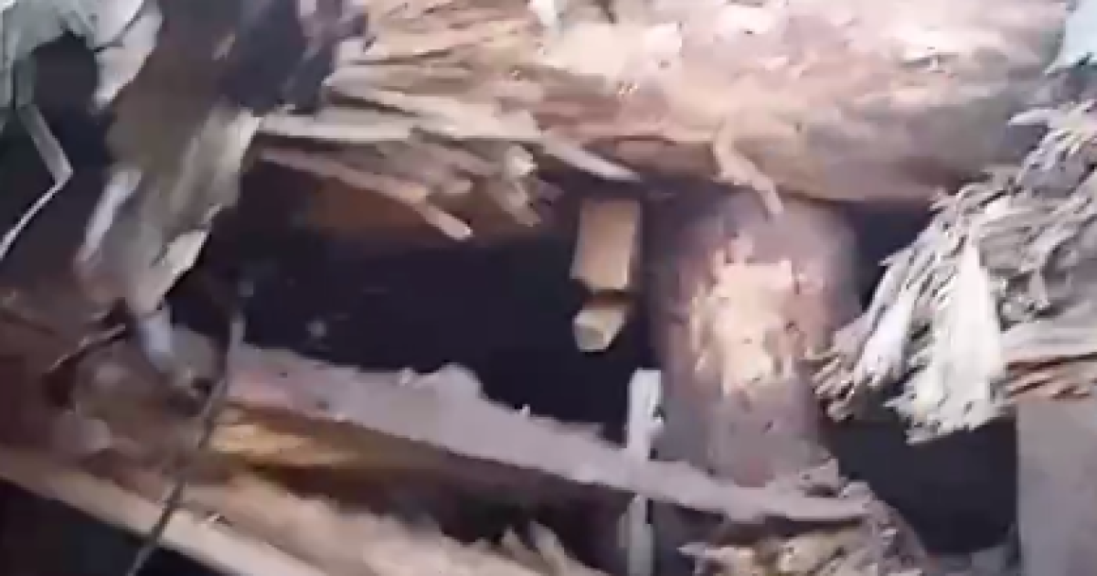 На кадрах видно разбитый в результате попадания российского дрона блиндаж. Он разрушил укрепление стен, а также балки, державшие укрытие. Однако обошло без потерь со стороны наших военных.