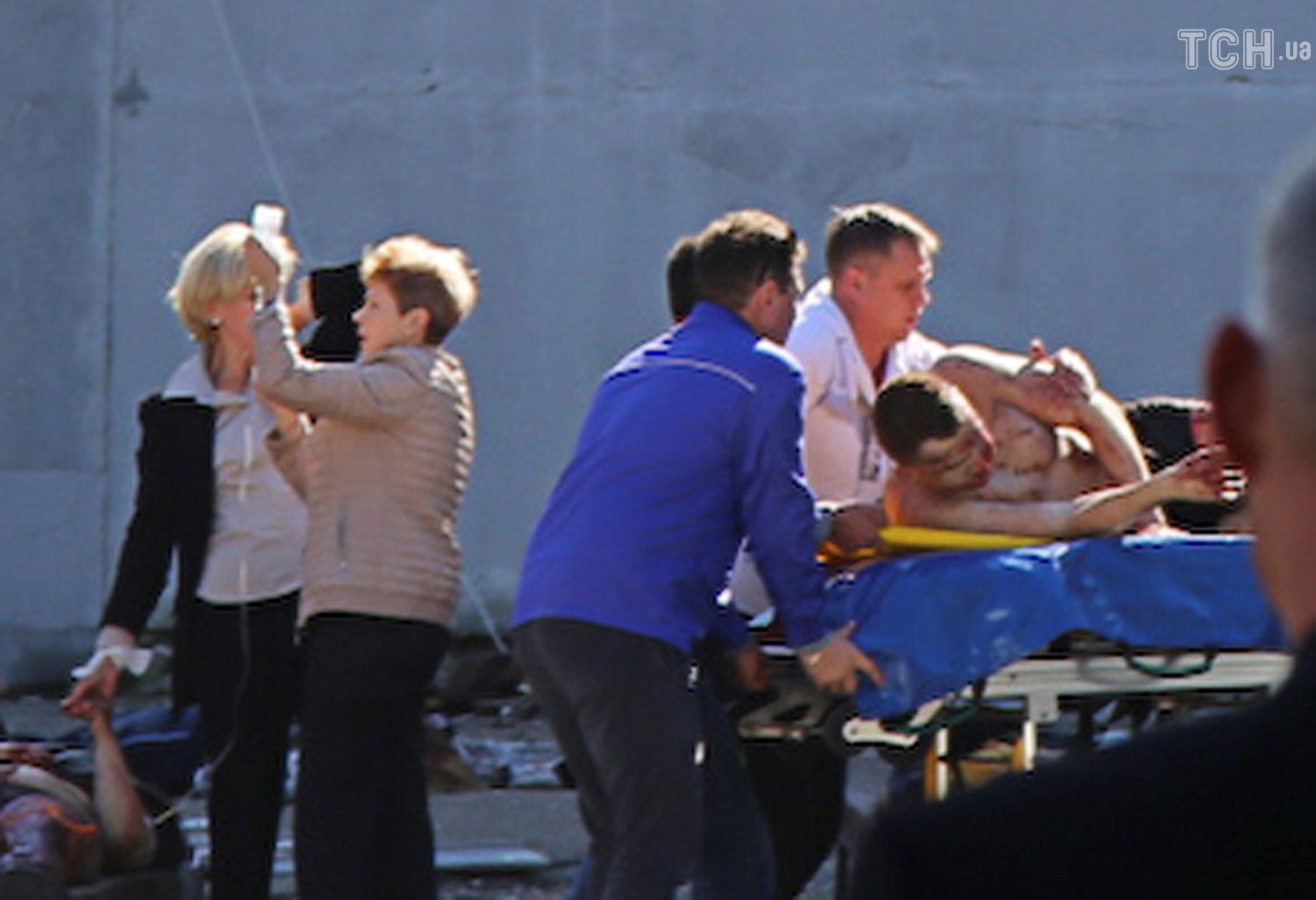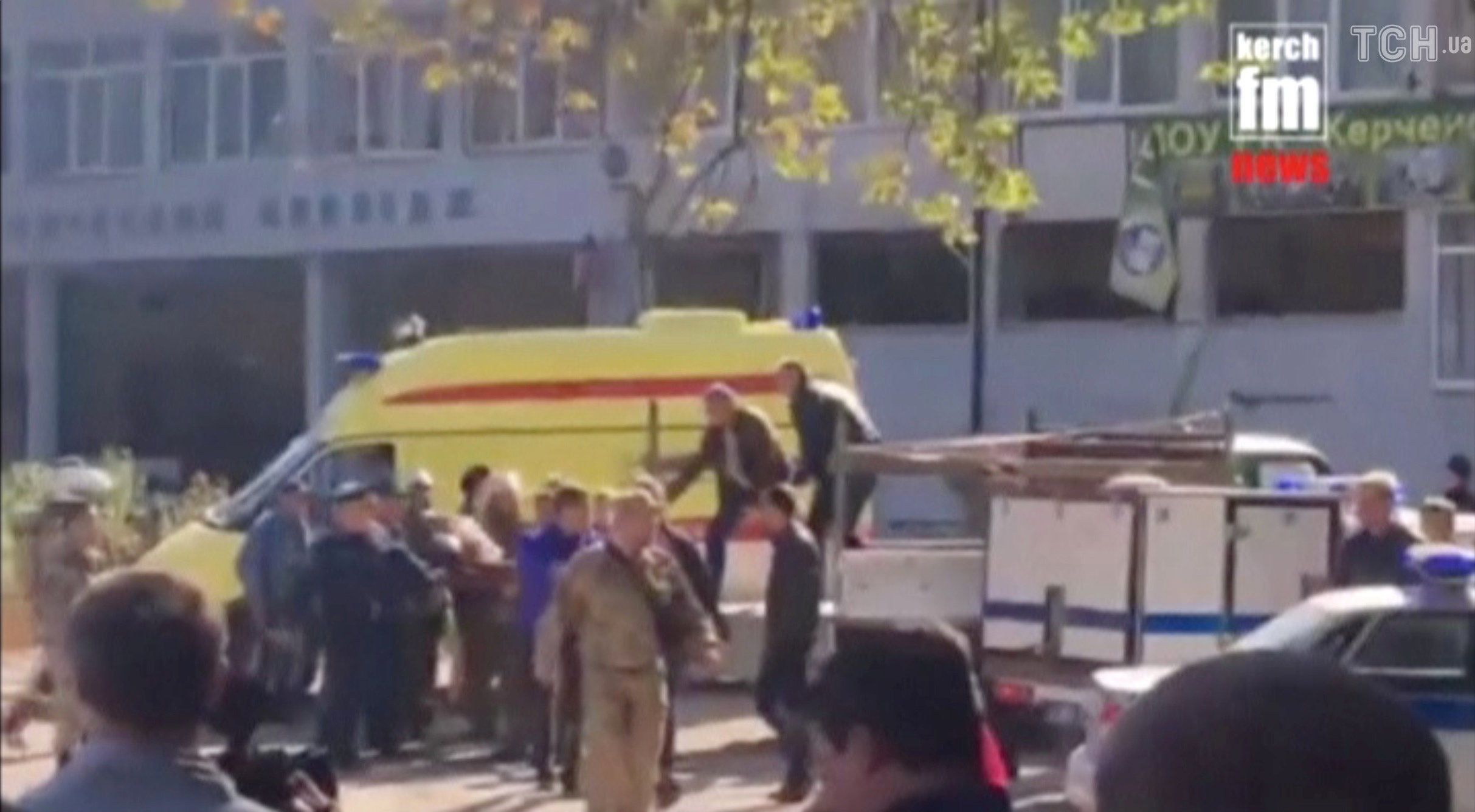 В помещении колледжа выбиты стекла, на улицах стоят машины скорой и чрезвычайных служб, из здания выносят пострадавших – такой увидели Керчь сегодня на телевизионных кадрах по всему миру. Мест в скорых, очевидно, не хватает, поэтому раненых перевозят и маршрутками, и частными авто, и военными машинами. Что произошло – версии разнятся. Сначала говорят о взрыве газа в столовой, но один из свидетелей в окровавленной рубашке убеждает, что кроме взрыва, слышал и выстрелы, а также видел много погибших. "Людей без ног, без рук", - говорил он.