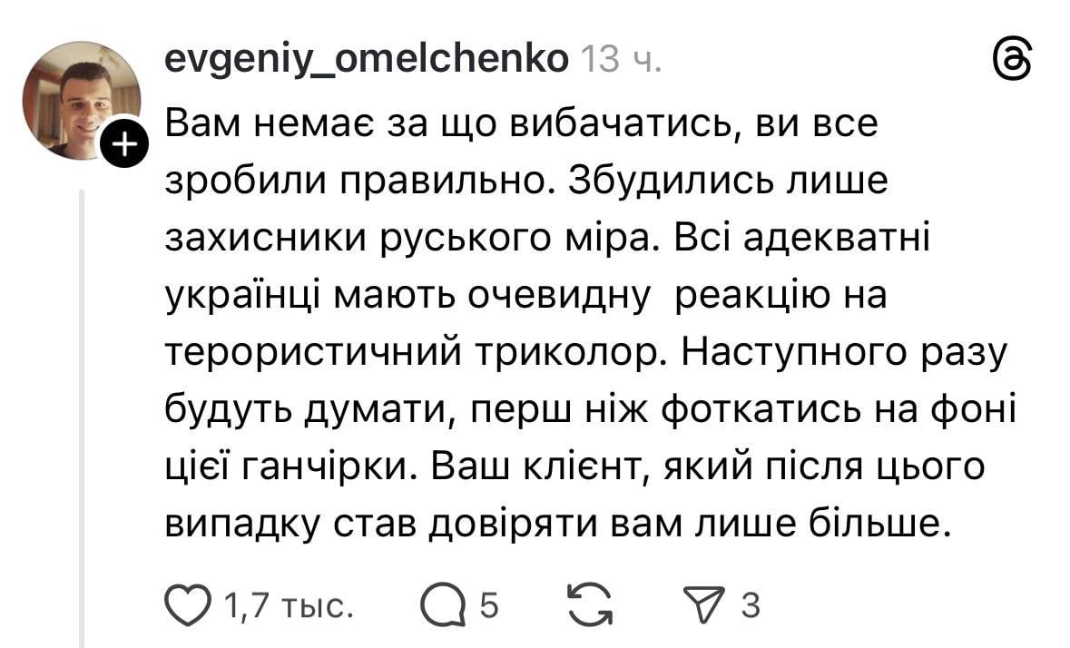 Соучредитель банка в своих социальных сетях объяснил, что публикация фотографии клиентки была импульсивным решением, вызванным эмоциональной усталостью от войны.