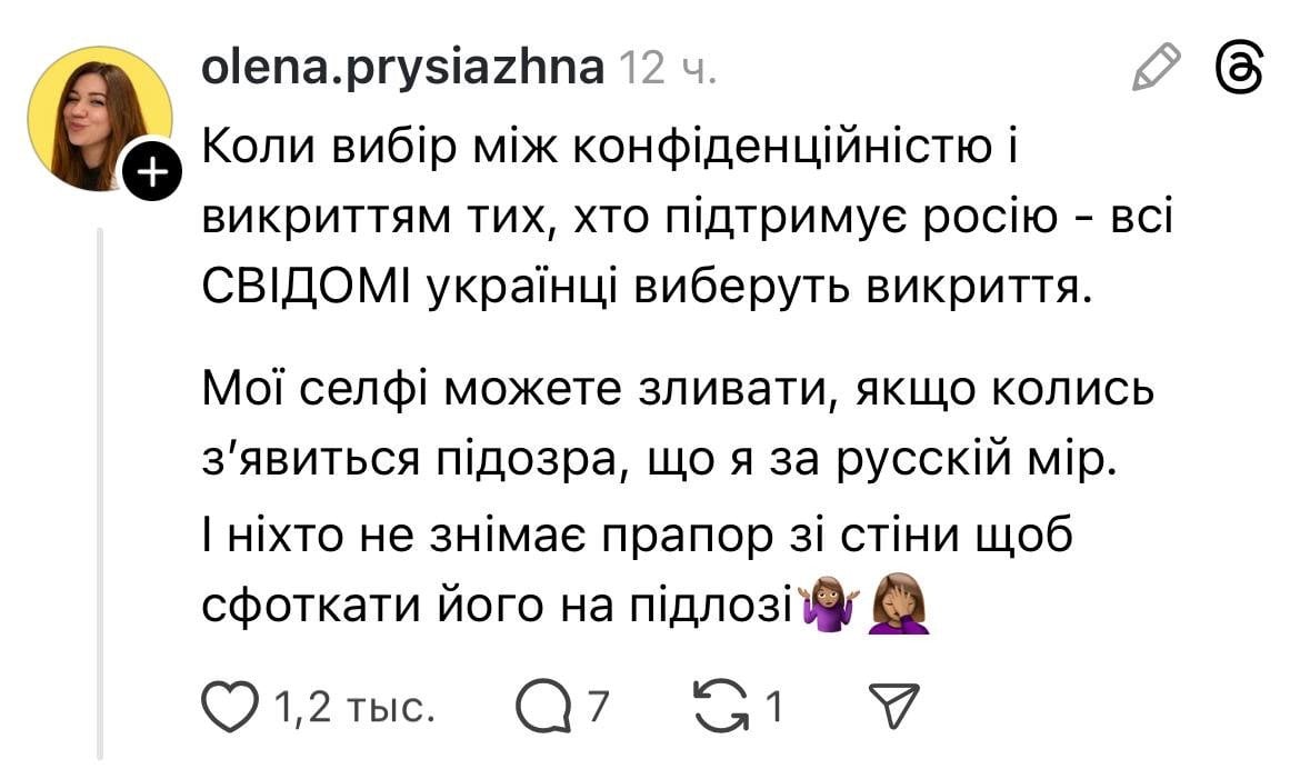 Анализ социальных сетей девушки также свидетельствует о ее активном участии в распространении информации о пропавших без вести украинских военных и украинских военнопленных.