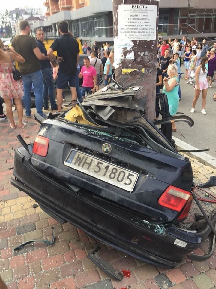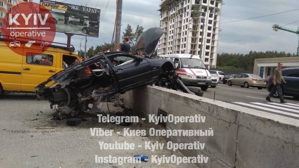 В результате аварии пострадали водитель и пассажир BMW. Спидометр автомобиля застыл на отметке 145 км/ч, передает Киев Оперативный.