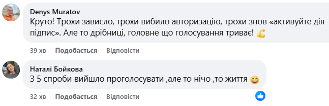 В комментариях в Facebook-странице "Дія" украинцы жаловались, что не могут проголосовать или проголосовали после нескольких попыток.