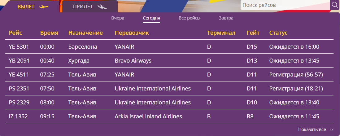 Кроме того, по словам пассажира, на 13 часов также задержаны рейсы до Тель-Авива и Хургады. Об этом также сообщается на сайте аэропорта.