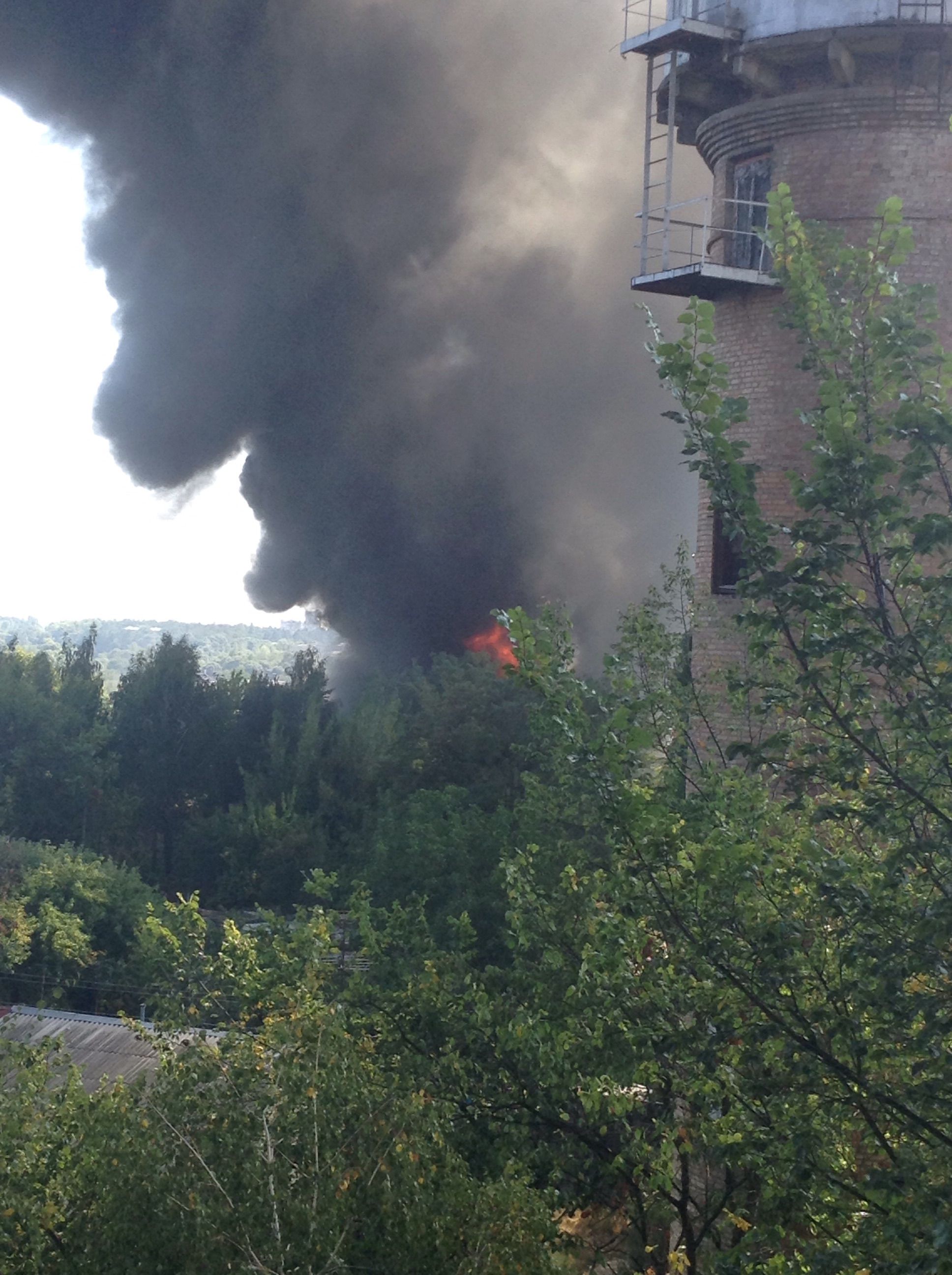 В городе Буча Киевской области возник масштабный пожар – высокий столп дыма виден за несколько километром от места возгорания.