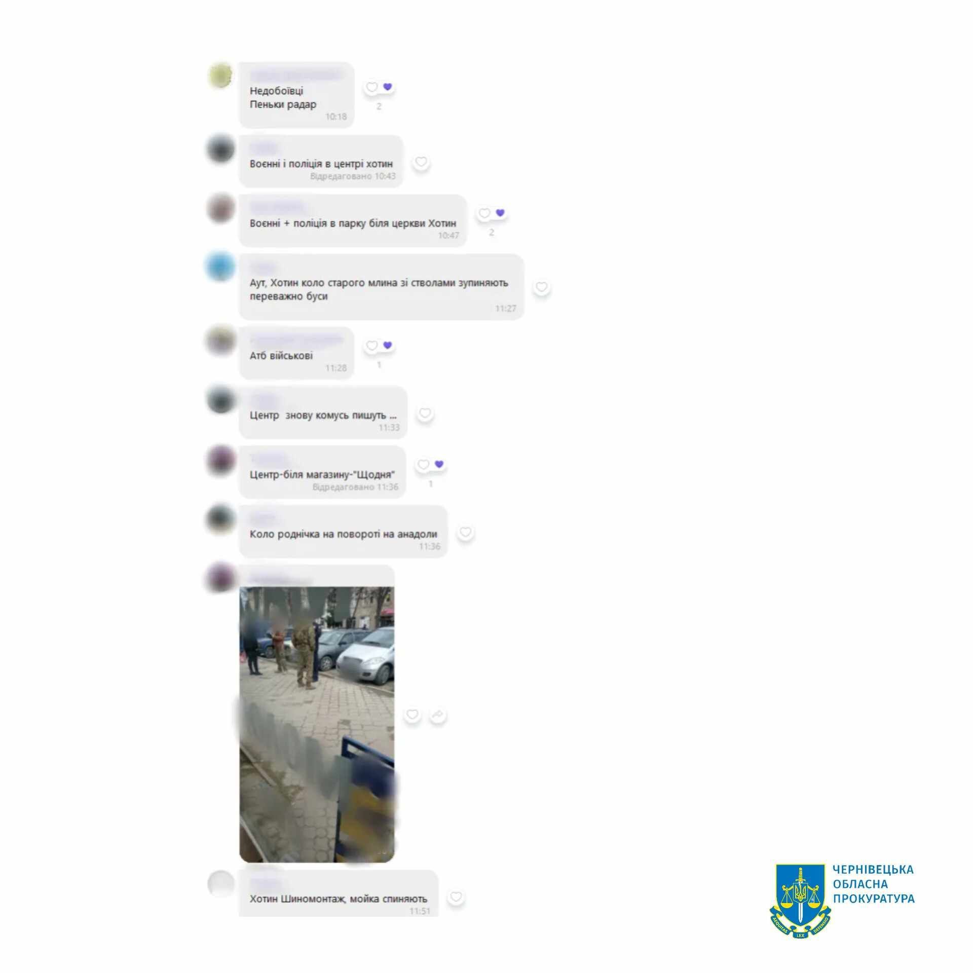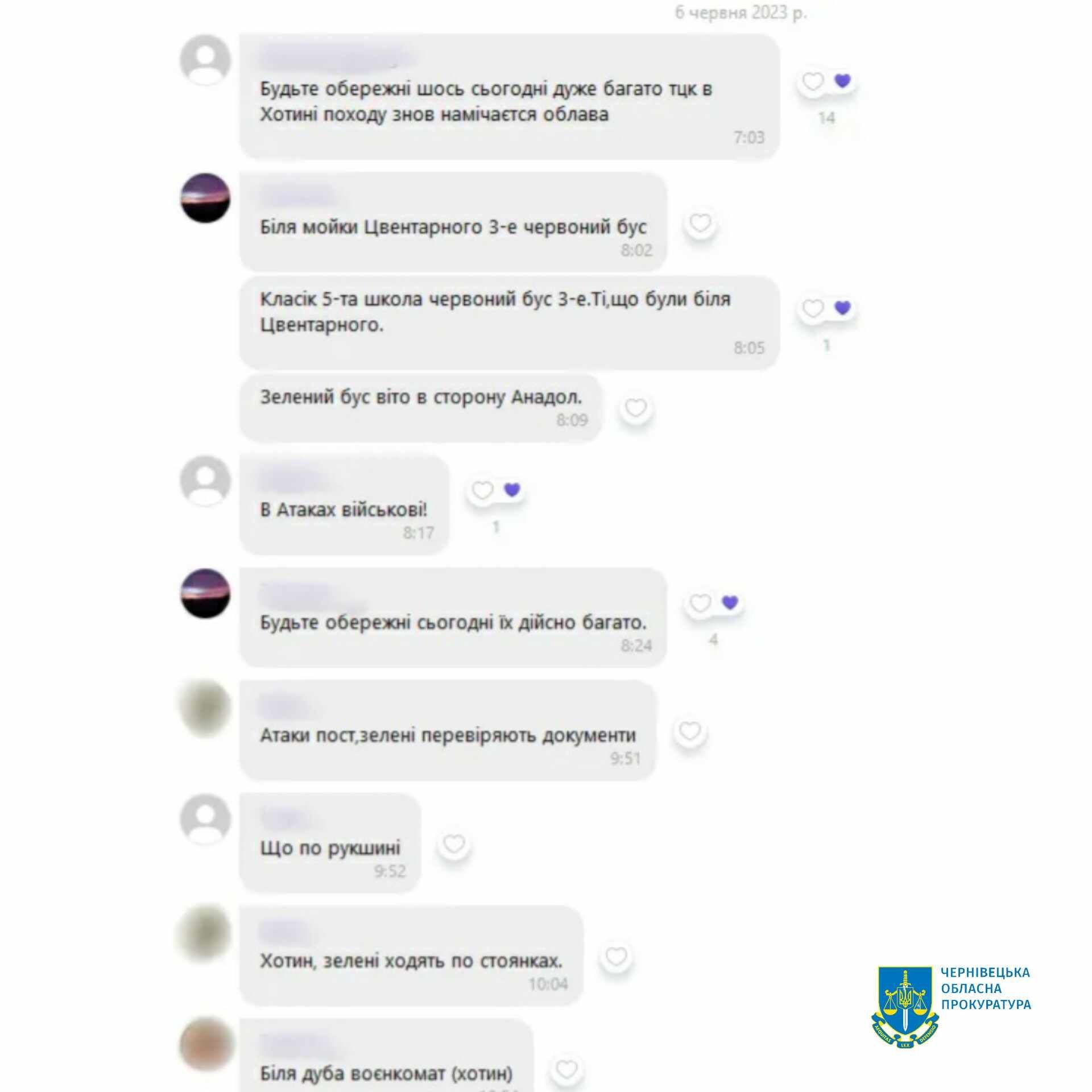 "С марта 2022 года на указанном ресурсе ежедневно появлялась информация о местах вручения повесток сотрудниками ТЦК и СП, что давало возможность лицам призывного возраста избегать получения таких повесток. Для сбора сведений о локации администратор сообщества использовал собственную сеть информаторов среди местных жителей Днестровского района Черновицкой области", — говорится в сообщении.