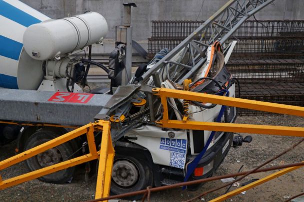 Водитель бетономешалки находился в салоне, когда на авто обрушился кран.