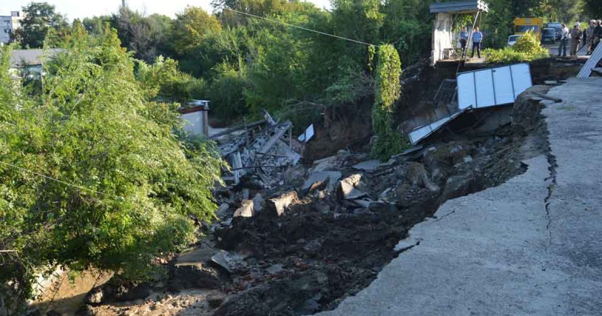 В Днепропетровске из-за внезапного оползня образовалась огромная пропасть