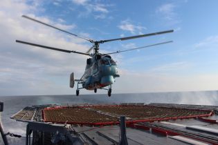 В Феодосии в воздухе зависли российские вертолеты и выпустили неуправляемые реактивные снаряды.