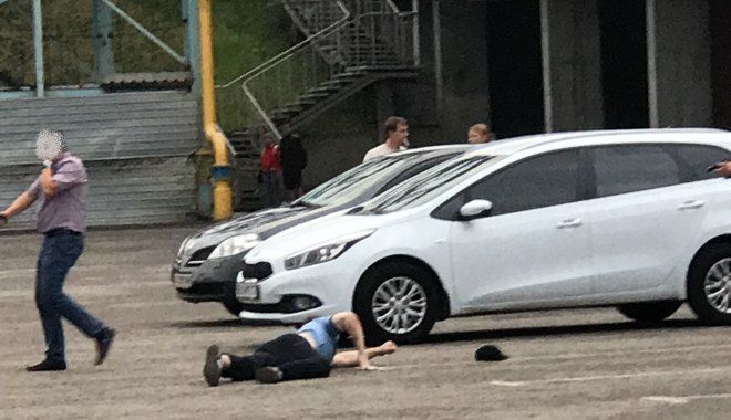 По словам свидетелей, двое мужчин стояли возле автомобиля, когда к ним подошли люди в штатском. После короткого разговора один из мужчин бросился бежать. Раздались выстрелы. Позже выяснилось, что стрелял сотрудник СБУ, беглецу он попал в ногу. В ведомстве ТСН сообщили, что на парковке их сотрудники задержали террористов.