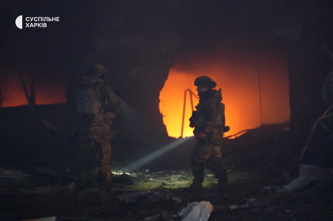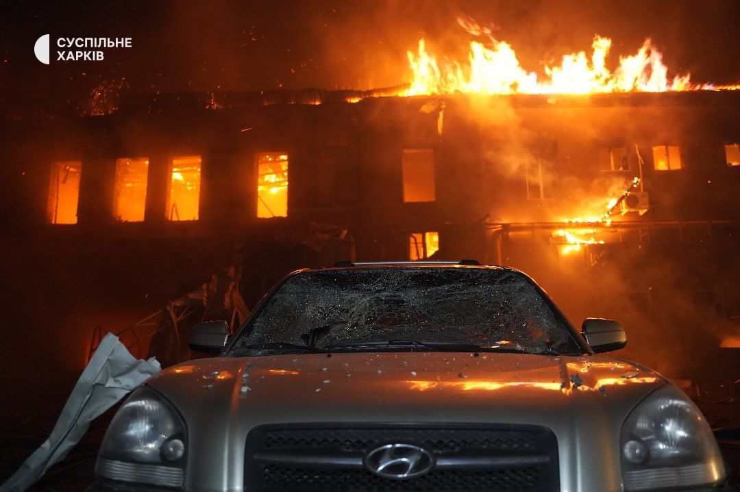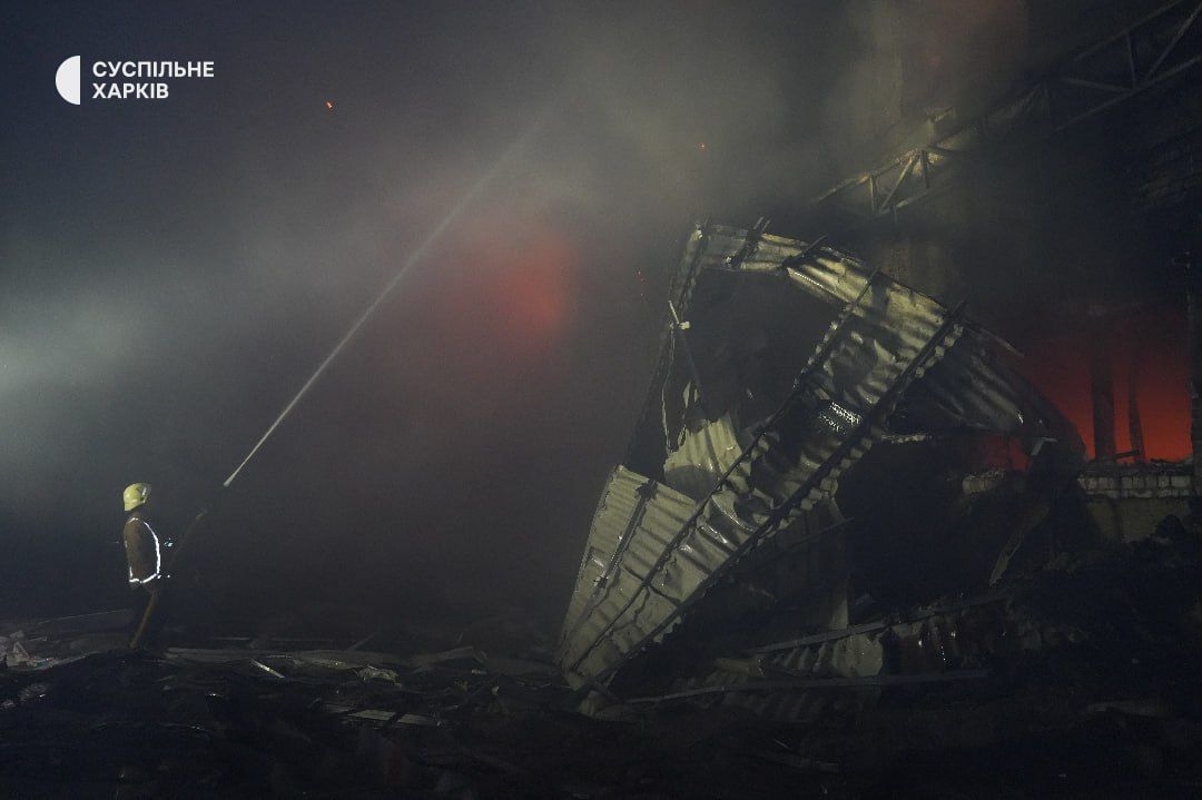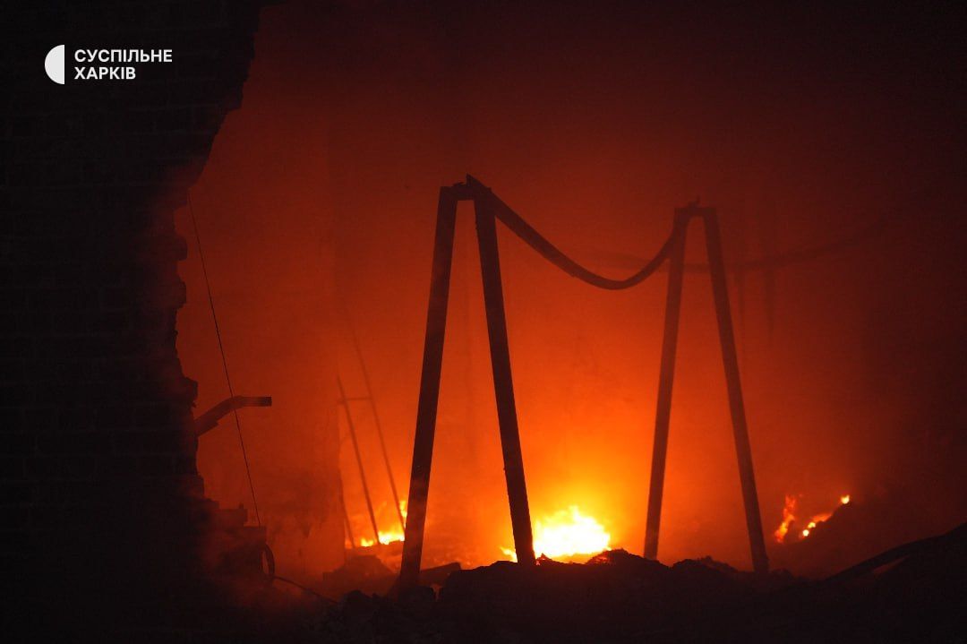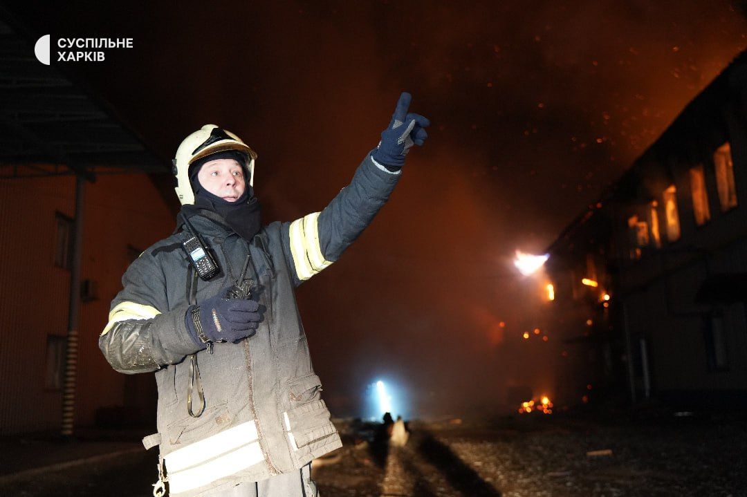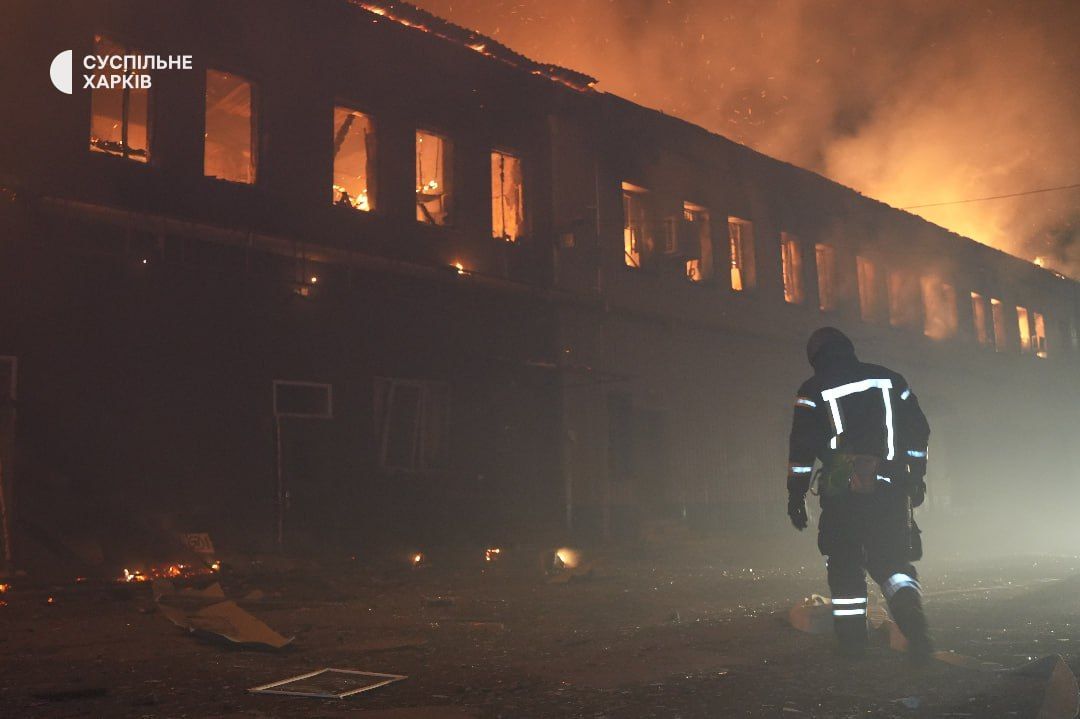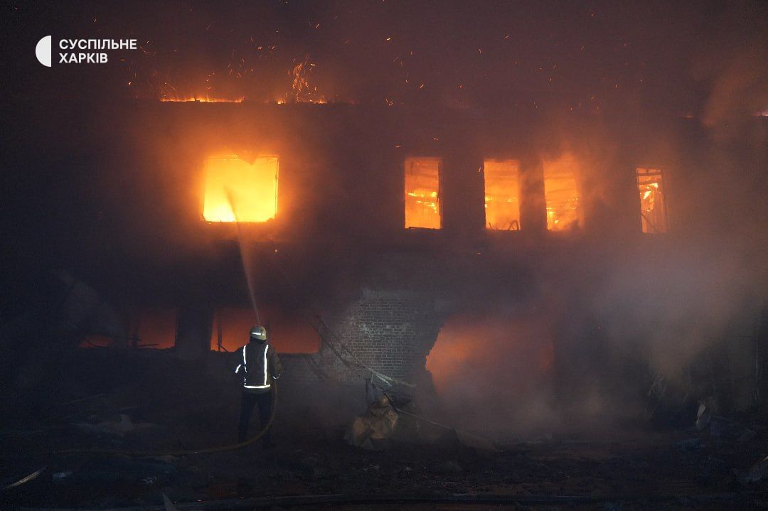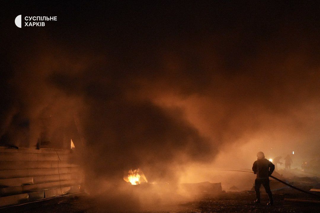"Вражеский беспилотник типа "Шахед" попал по территории гражданского предприятия. Предварительно, это деревообрабатывающий цех. После попадания произошло повреждение газопровода, который использовался на предприятии для производства. В связи с этим возник масштабный пожар, с большим распространением. К тушению привлечены более чем 12 подразделений ГСЧС, также техника Харьковского городского совета" — рассказал директор городского департамента чрезвычайных ситуаций Богдан Гладких.