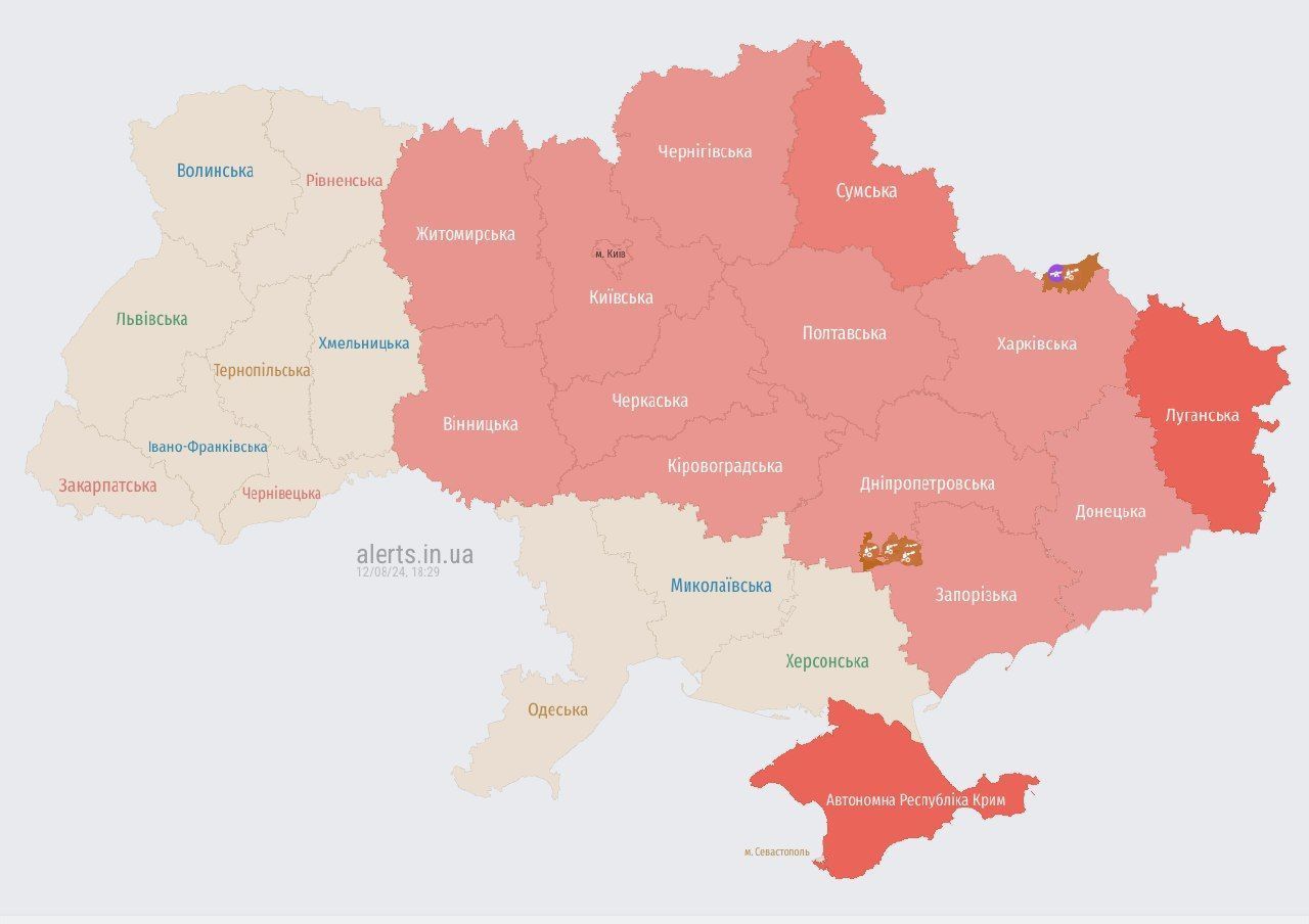 В Украине вечером 12 августа объявили воздушную тревогу в Киеве и ряде других областей из-за угрозы баллистики.