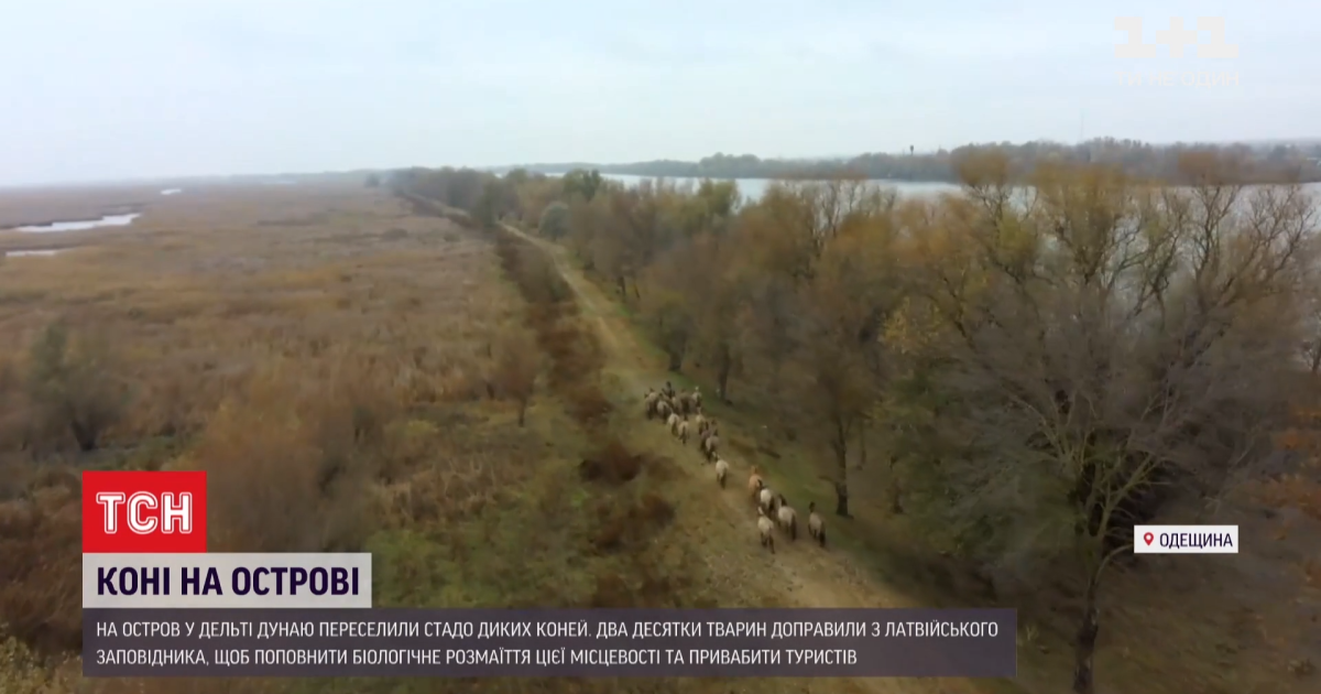 В Одесской области на остров Ермаков завезли диких лошадей из латвийского заповедника: видео