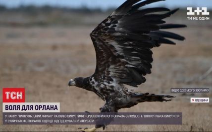 В Одесской области работники зоопарка вместе с учеными ландшафтного парка выпустили в дикую природу орлана-белохвоста. Летом птицу изъяли у уличных фотографов.