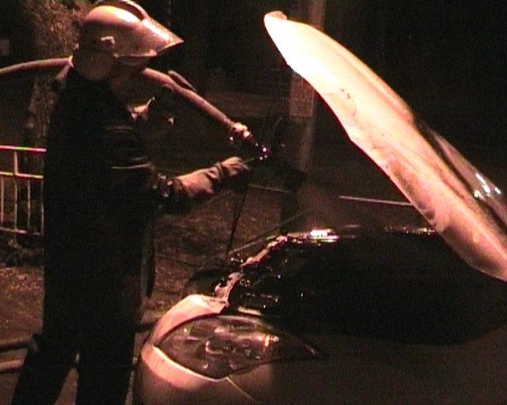 По словам очевидца, к машине подбежал неизвестный и бросил бутылку с зажигательной смесью, после чего внедорожник загорелся.