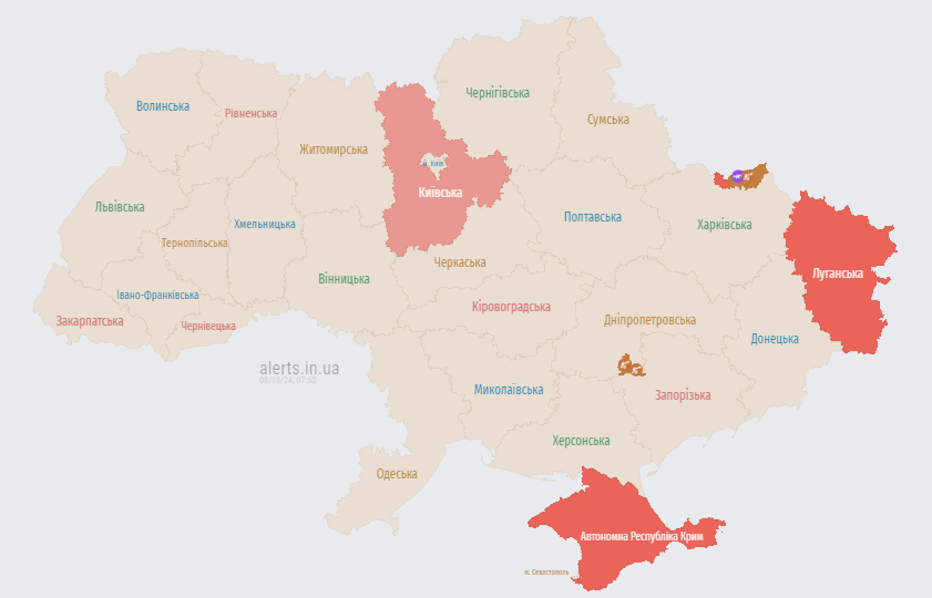 Карта тревог на утро вторника 8 октября.