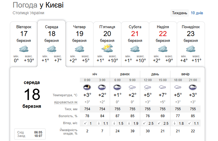 Погода в Киеве 18 марта