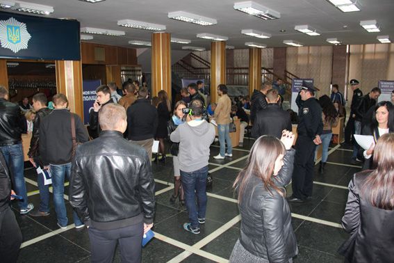 По данным областного ГУ МВД, с самого утра десятки желающих работать в полиции собрались в помещении облмуздрамтеатра в пункте приема анкет.