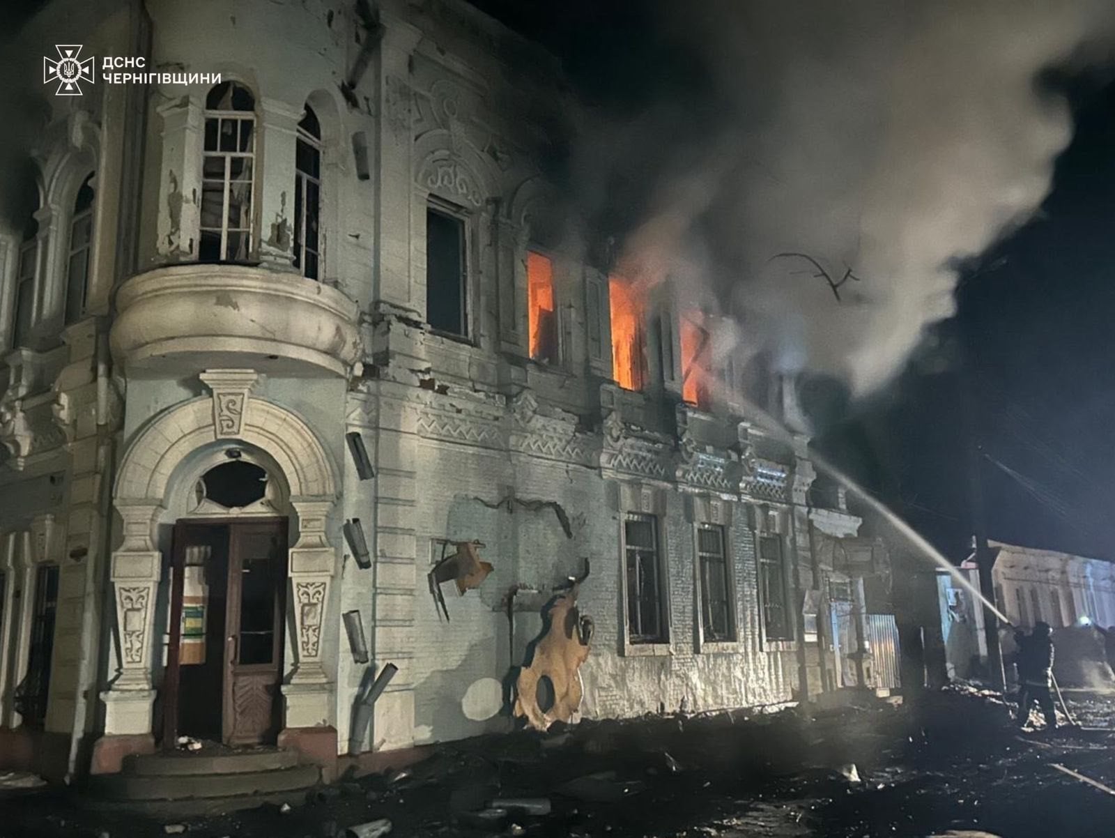 «Этой ночью враг "Геранью" атаковал историческое здание в центре Новгорода-Северского. Это было помещение местной библиотеки. Пожар потушили пожарные. Повреждены близлежащие здания и дома людей», — указал Чаус.