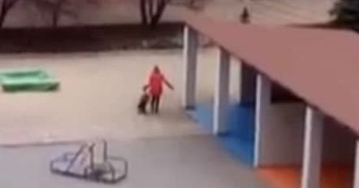 На видео видно, как растерянный ребенок стоит во дворе детсада, когда другие дети уже пошли в группу. Ребенка, которого забыли, обнаружили, и разъяренная воспитательница выбежала, схватила его за руку и буквально поволокла в направлении помещения.