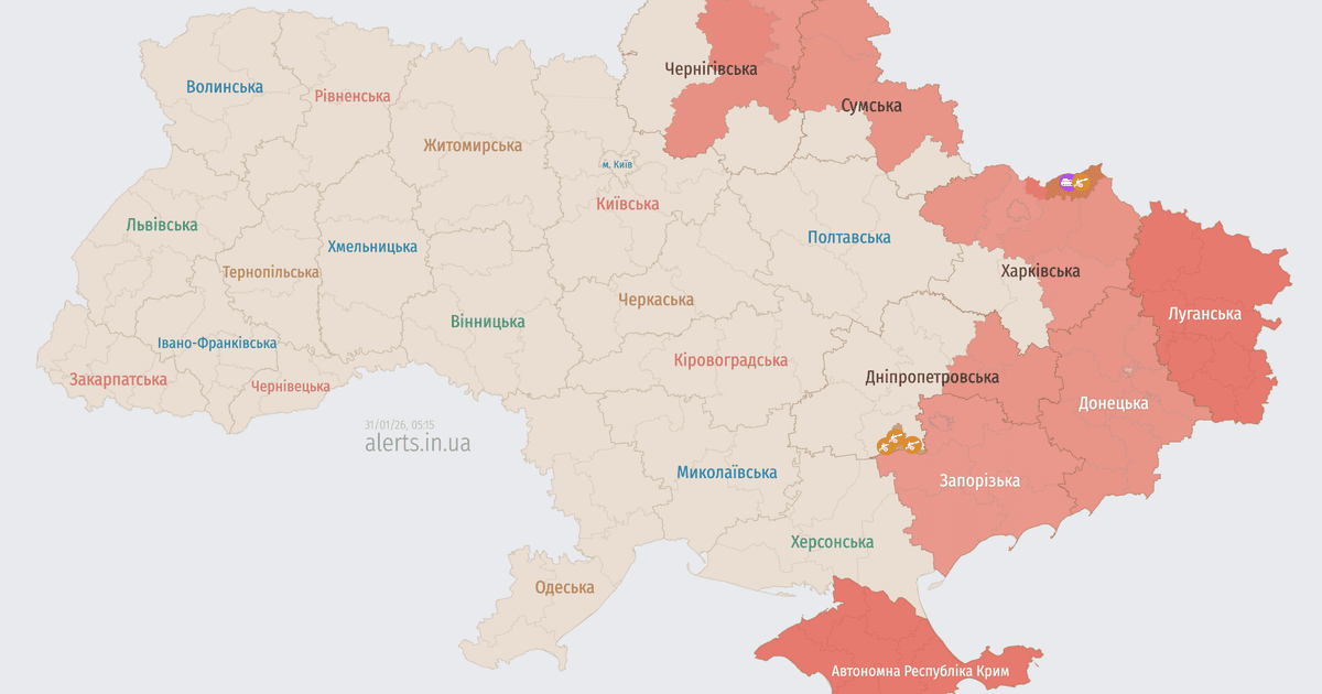 Украину в ночь на 31 января атакуют вражеские беспилотники типа Shahed.