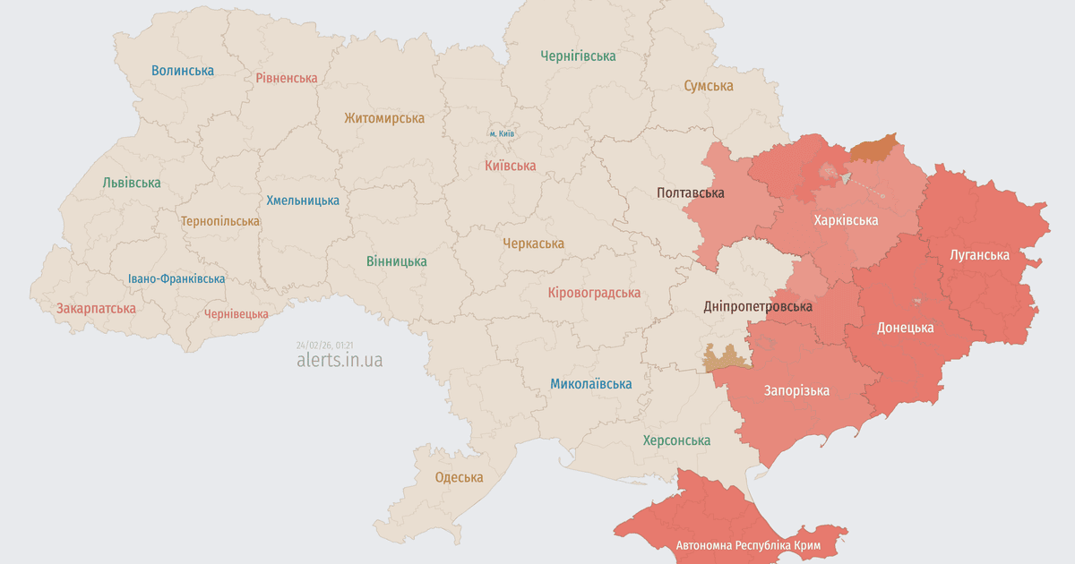 Украину в ночь на 24 февраля атакуют вражеские беспилотники типа Shahed.