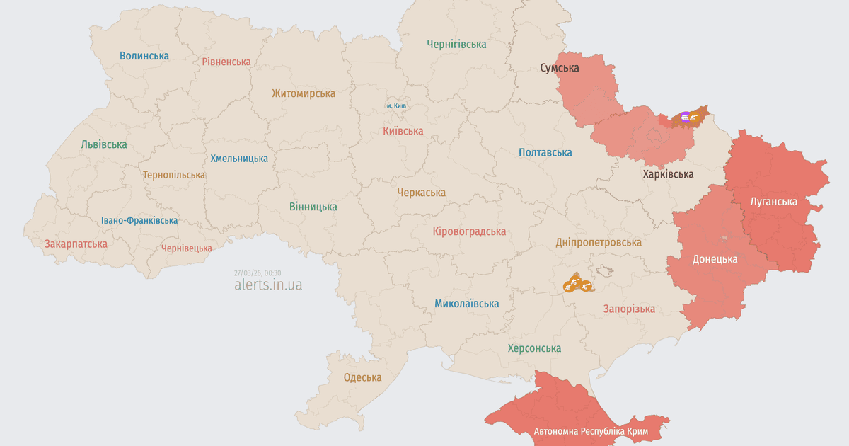Украину в ночь на 27 марта атакуют вражеские беспилотники типа Shahed.